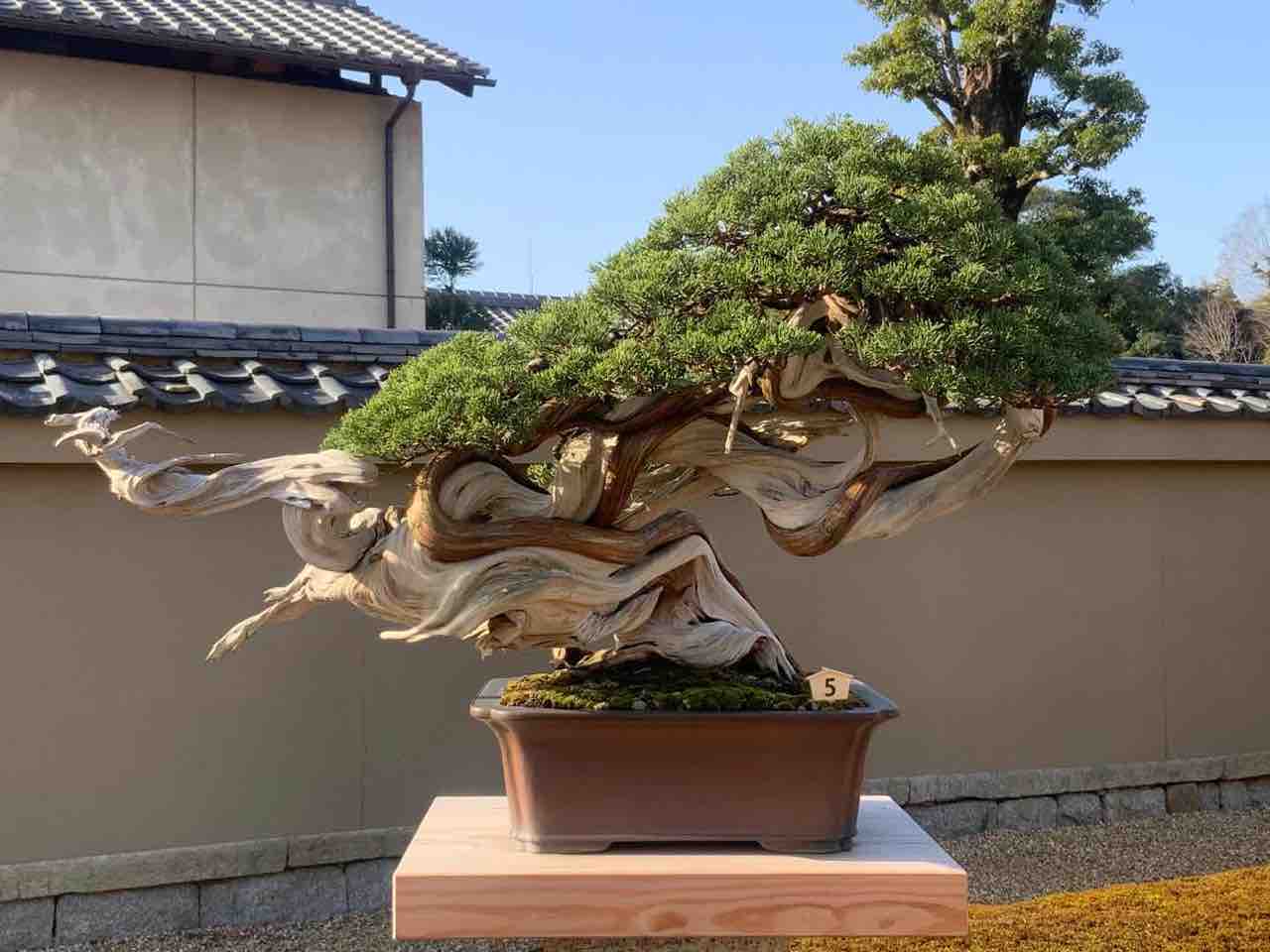 世界を代表する日本の盆栽・真柏・銘「登龍の舞」木村正彦先生よりご好意ある展示に感謝しています。