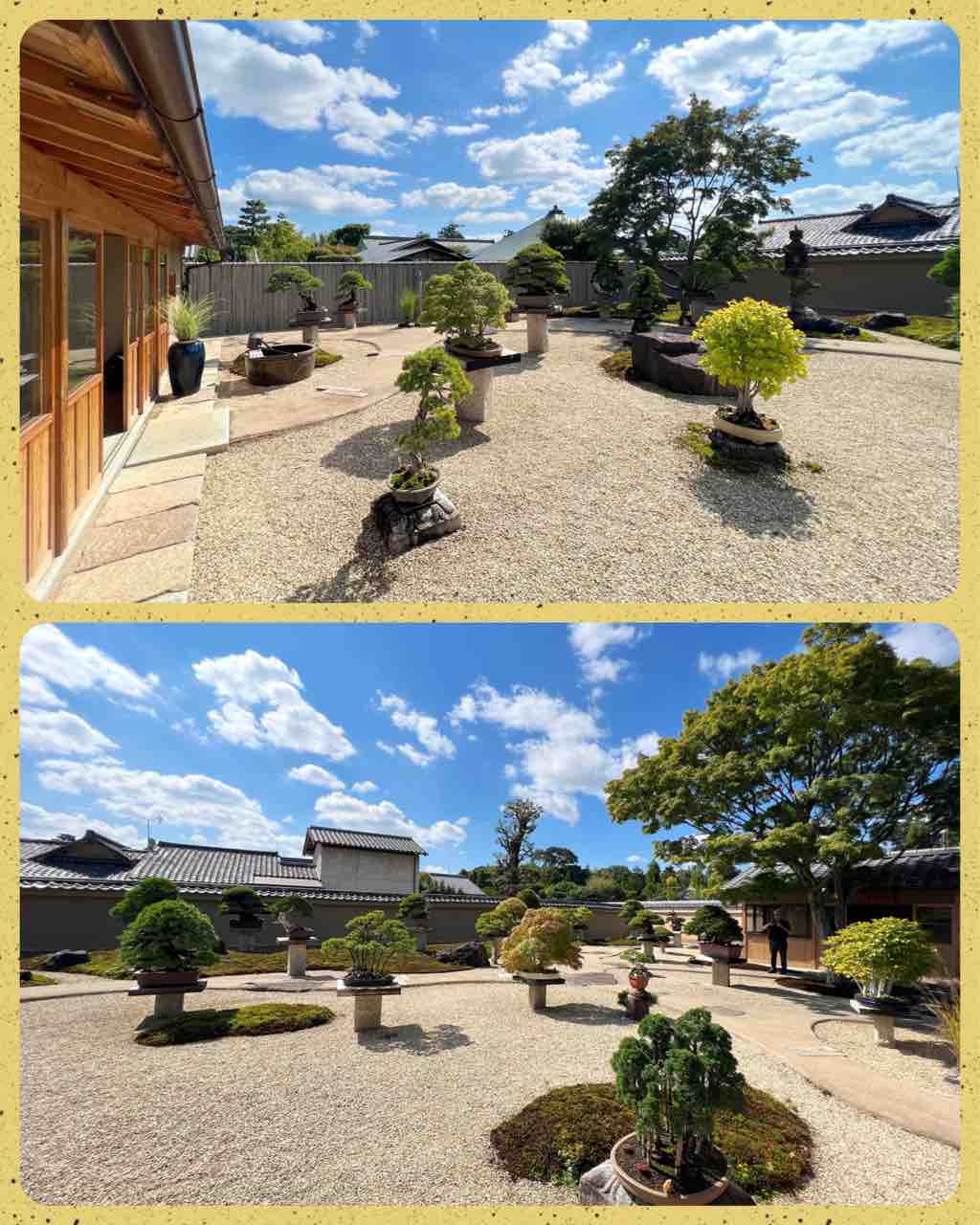 隣接する修行道場から聞こえる鐘や笏丈の音、それ以外は何も聞こえない静けさの中の盆栽庭園。