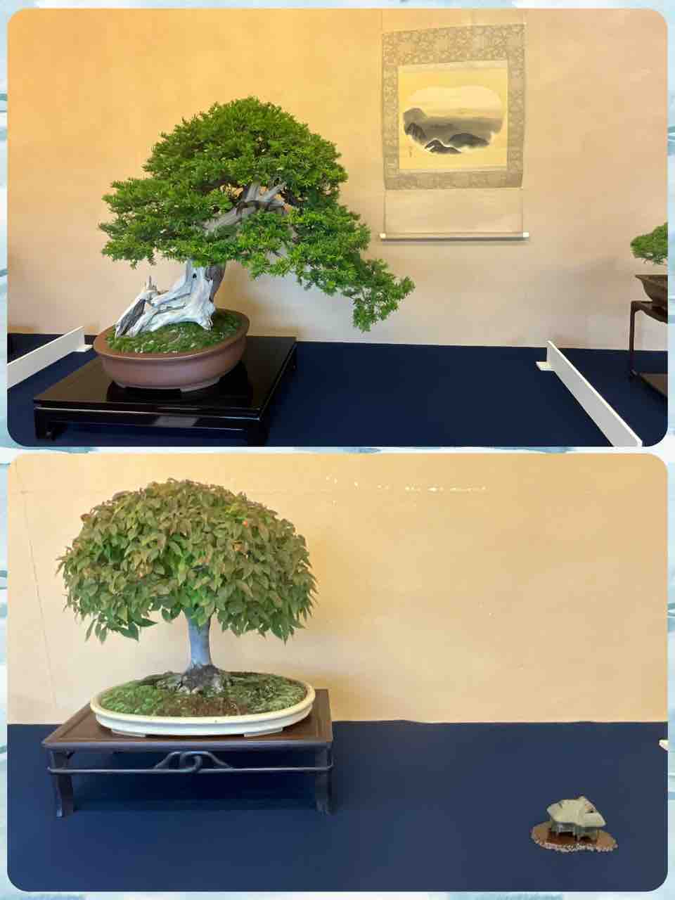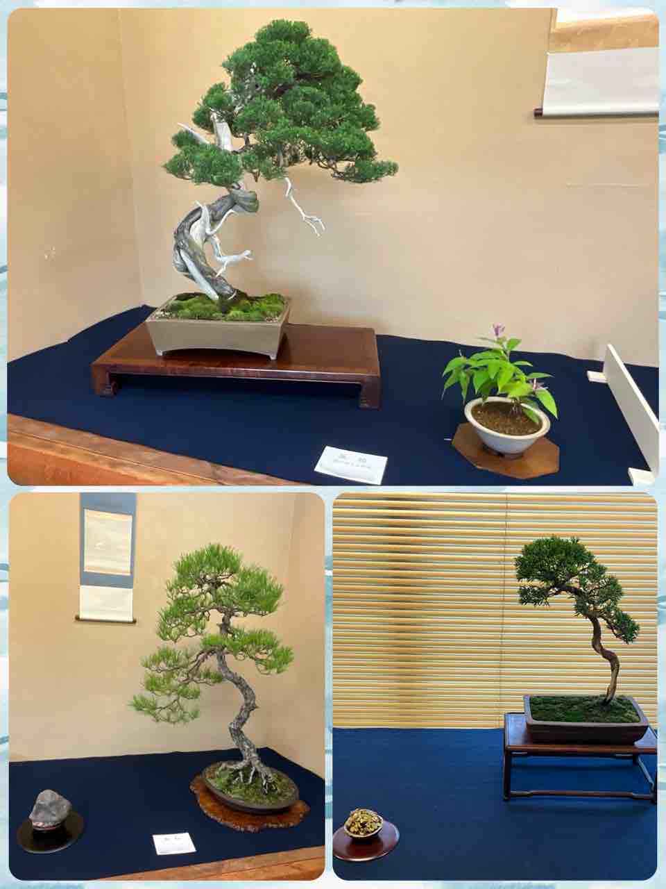 今春から始めた、盆栽教室の生徒さん達による作品展。