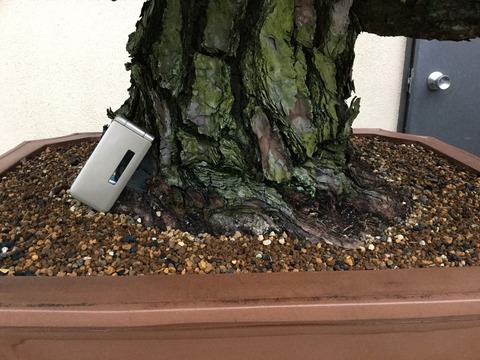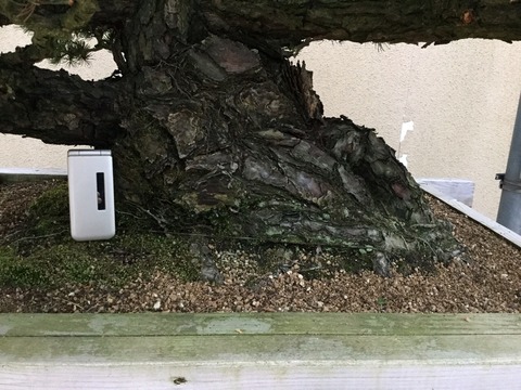 私の胴回りはあるかと思う程の幹力は、雨竹亭の他の盆栽と並べて置いてしまうと、