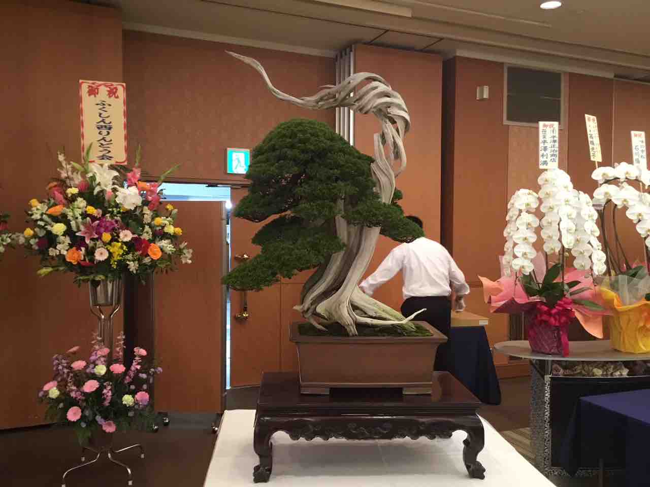 芸術作品としての展示設備を作り、初の木村正彦先生の創作盆栽を価格を表示して飾らせて頂きました。