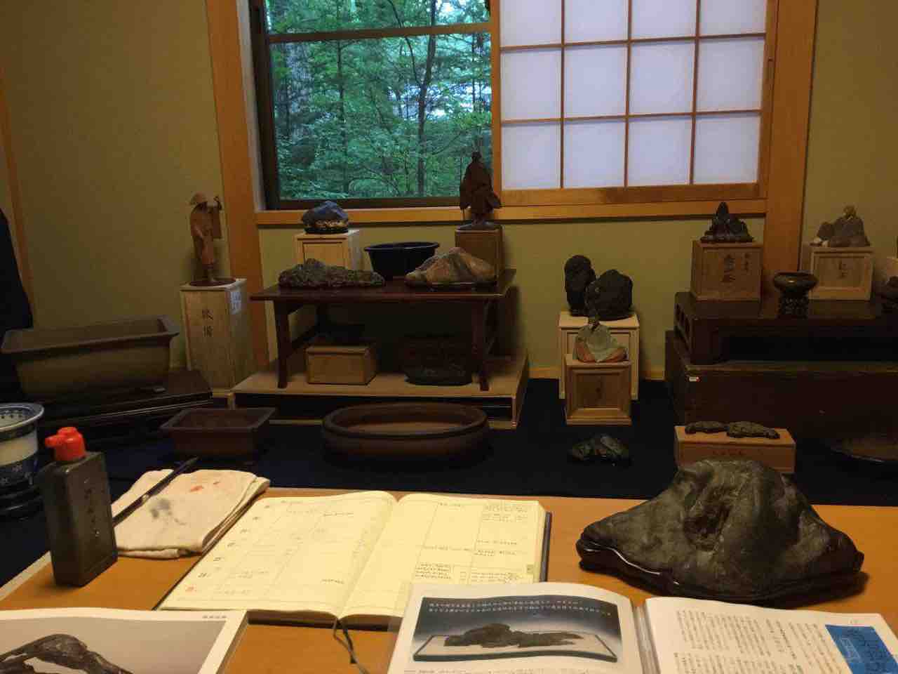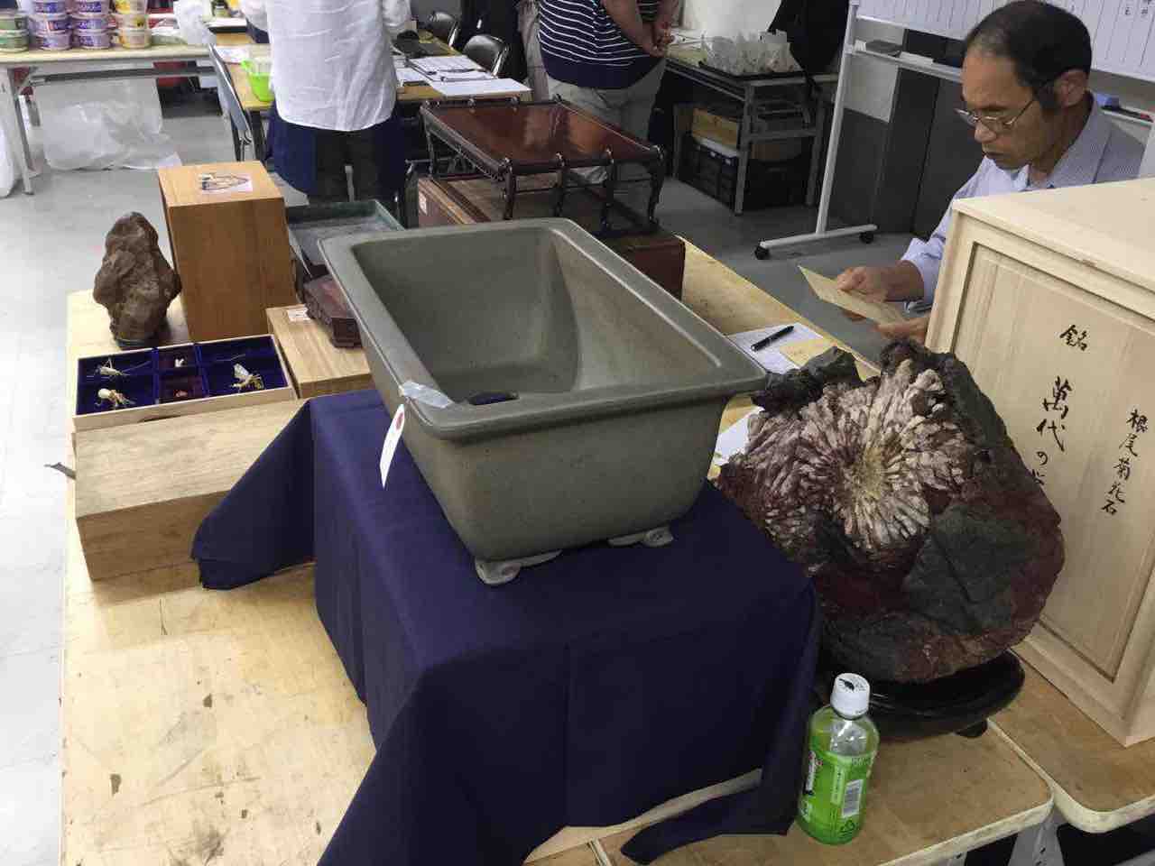水石・盆器・水盤・卓・などは、殆ど私ひとりが中心の競りなので、8時スタート・19時終了で、喉はかすれ、身体はクタクタになりました!