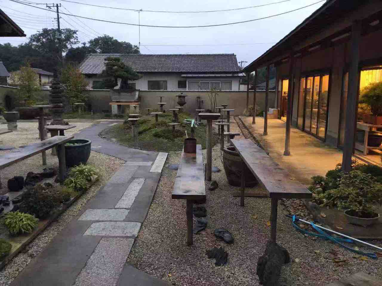出来るだけの盆栽達を暴風雨から防ぐ為に、応接室・展示場・手入小屋・スタジオまで、取り込める所全部を使って樹の安全を第一にします。