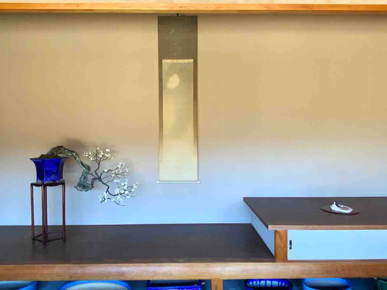 脇床には、今年はじめての“水盤飾り“での水石を設えました。