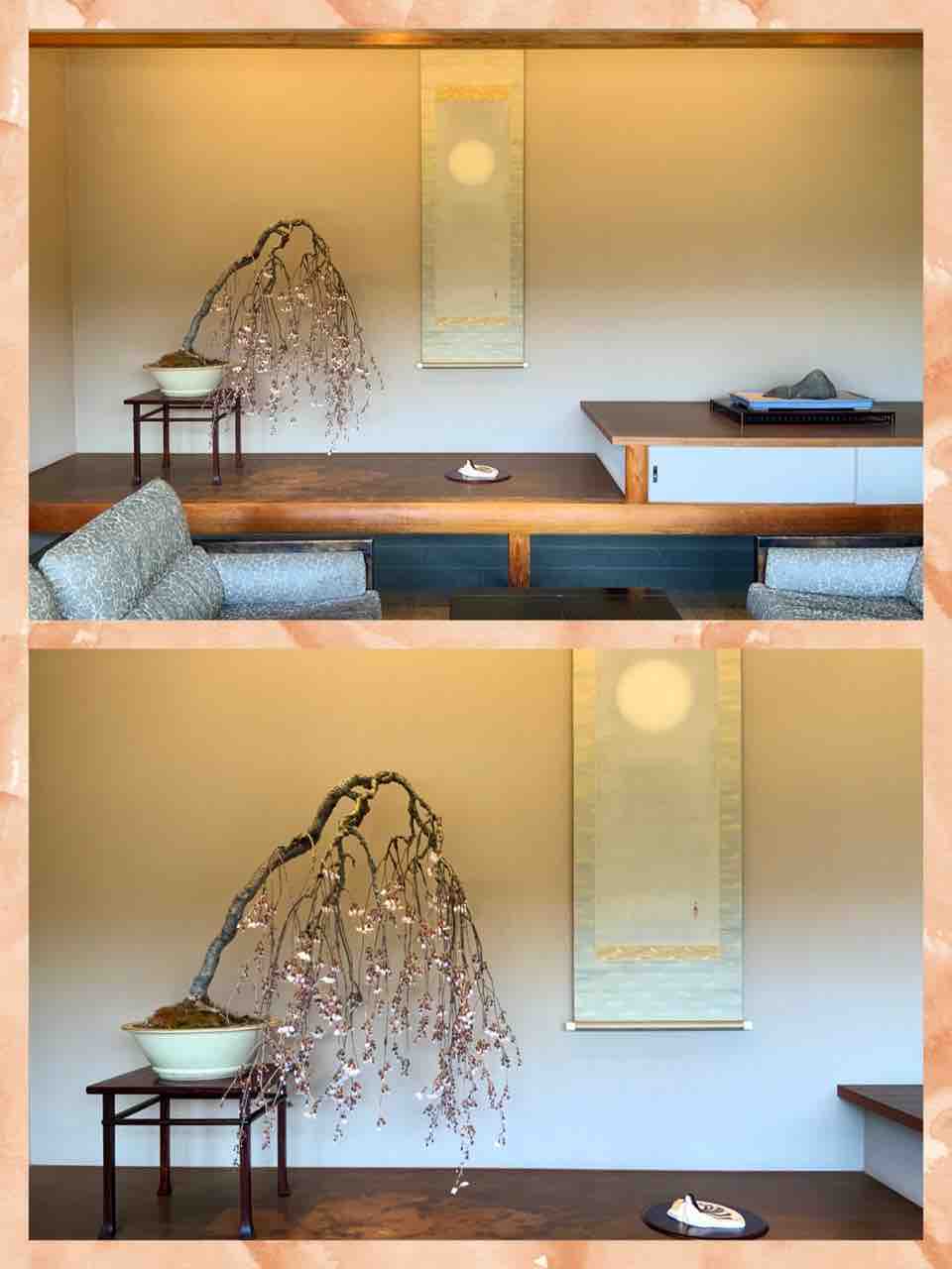 「幽玄」という日本の美のひとつを代表する言葉がありますが、春の盆栽飾りで、この言葉が一番似合うと思っています。