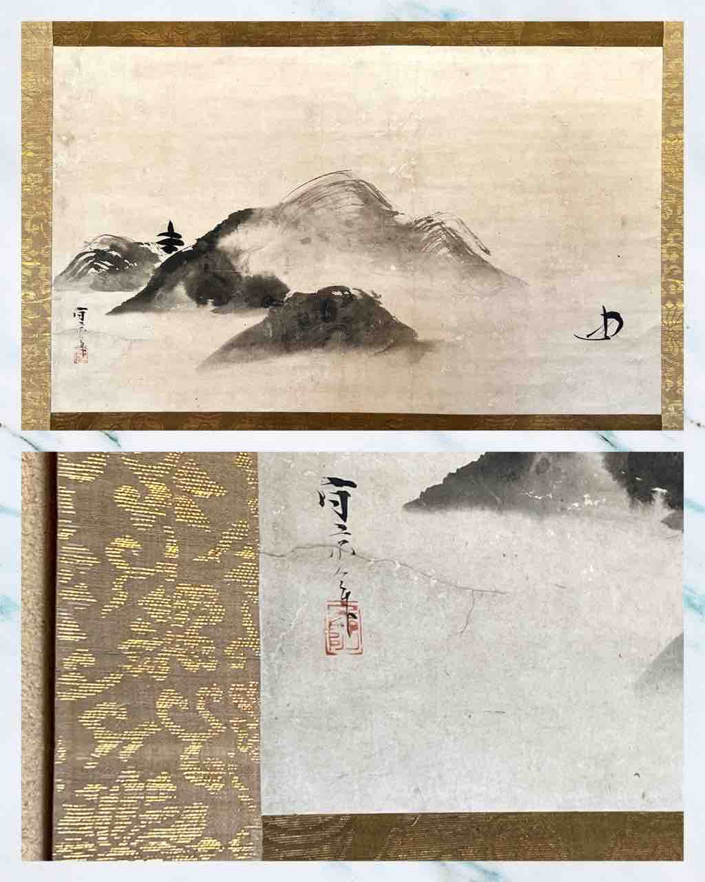 名筆の伸びやかで無駄のない筆致と空間使い、紙の古感も良く、何より“表具“の仕立や古裂の質の良さが際立っています。