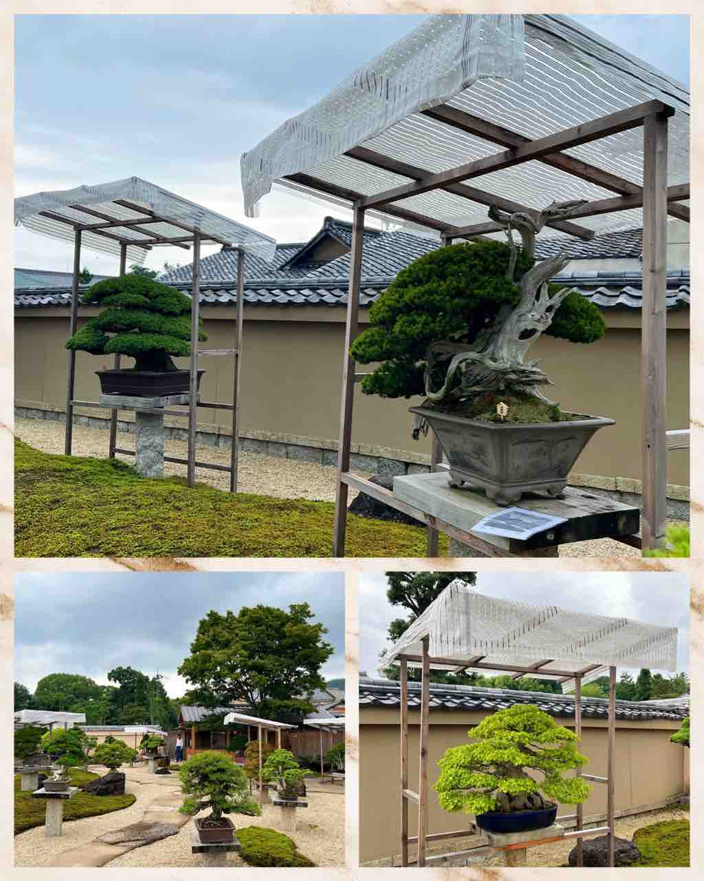 日除けの必要な樹だけに、木枠で小屋掛けして、遮光ネットを張る、こんな面倒な仕様をするのは、この芳春院盆栽庭園だけでしょう💦