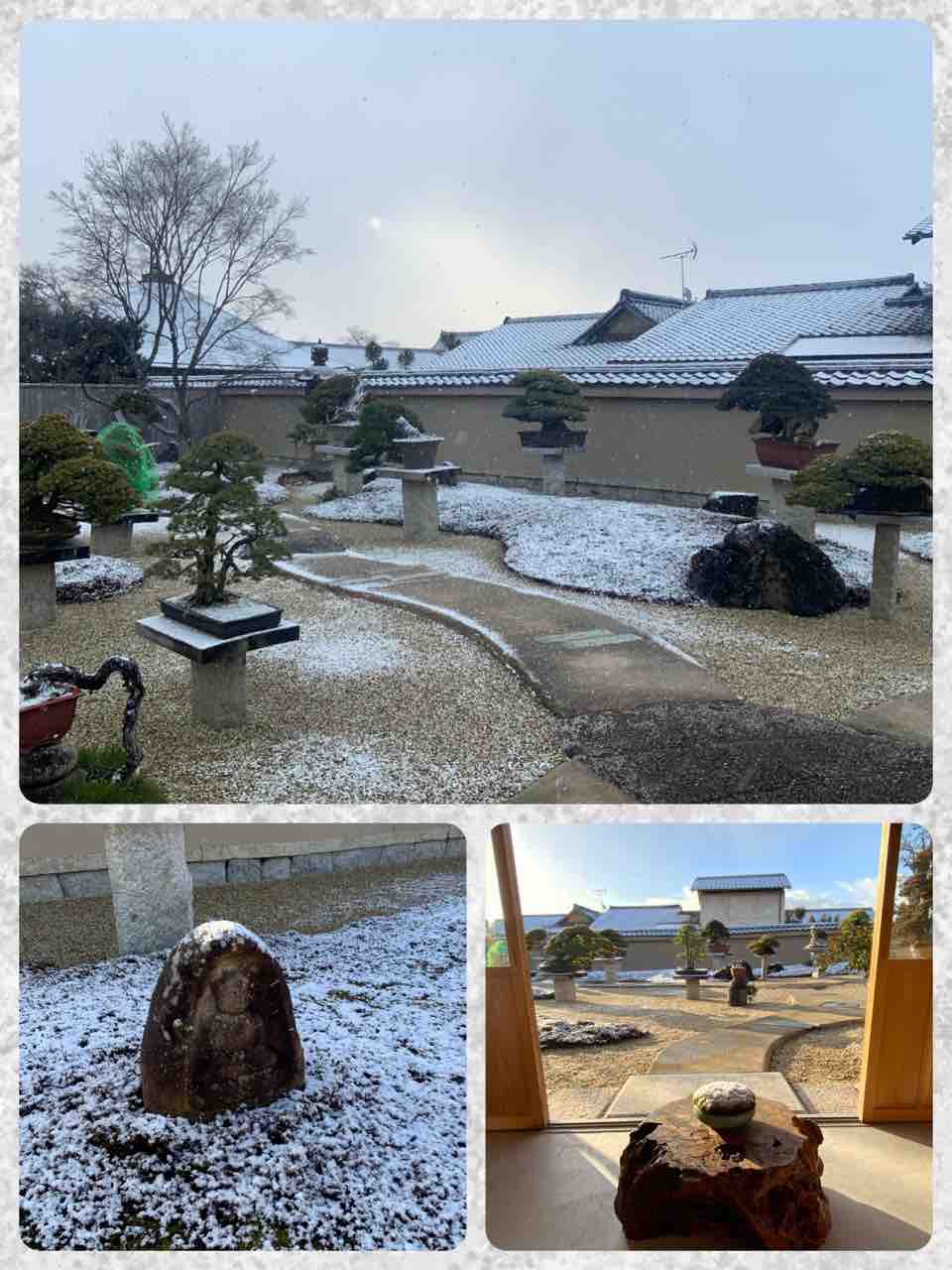 名ばかりの立春も間近の中、大徳寺の盆栽達は、意外にこの冬、この雪、を喜んでいるようです❗️