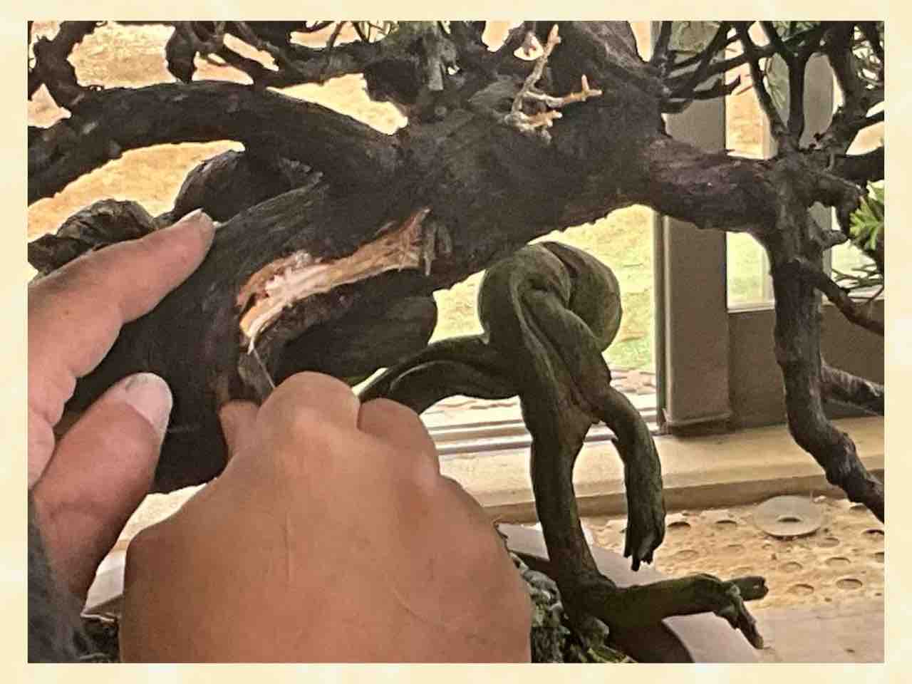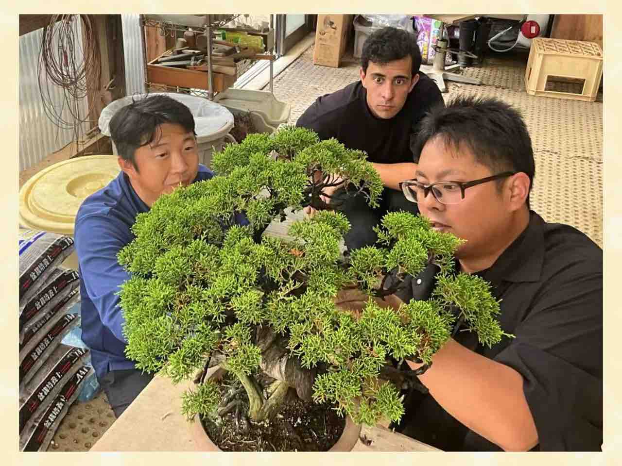 忙しい中、彼は創作盆栽としての真柏に新たな姿を描き出しました。