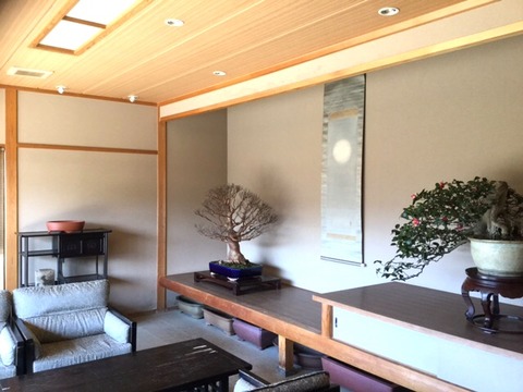 新春に手に入れた貴重盆栽の姫沙羅の名樹を初めて飾りました。